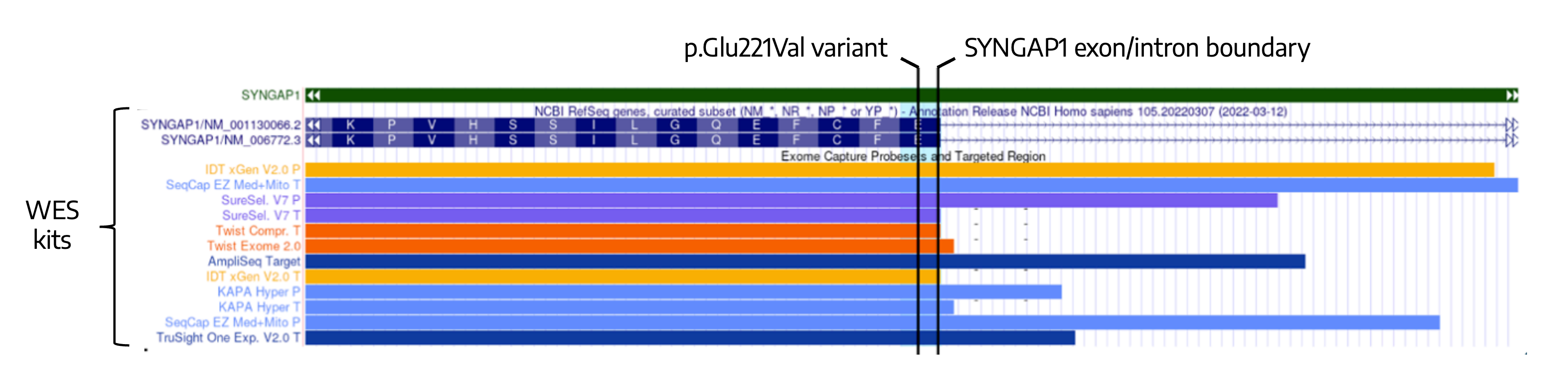 While sequence changes are usually detectable by exome testing, this variant is located near an exon/intron boundary, in a region that is poorly covered by WES probes. This results in poor read coverage.